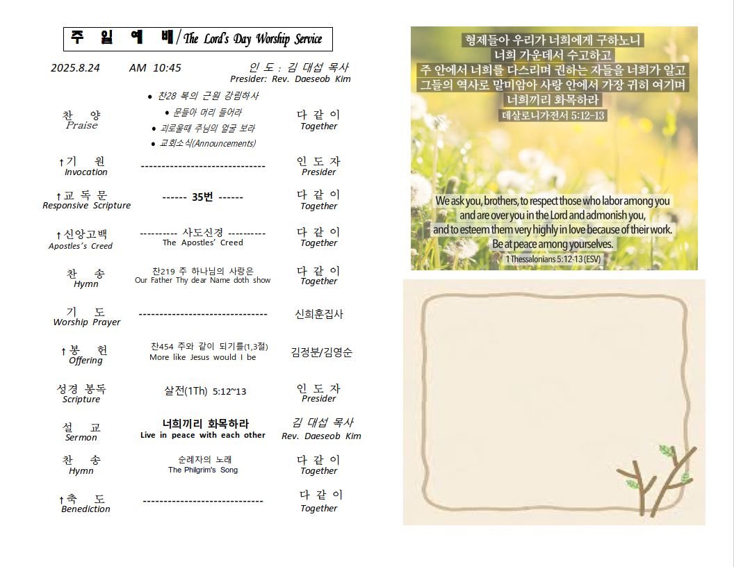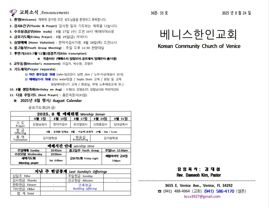 2025년 8월 24일 주일