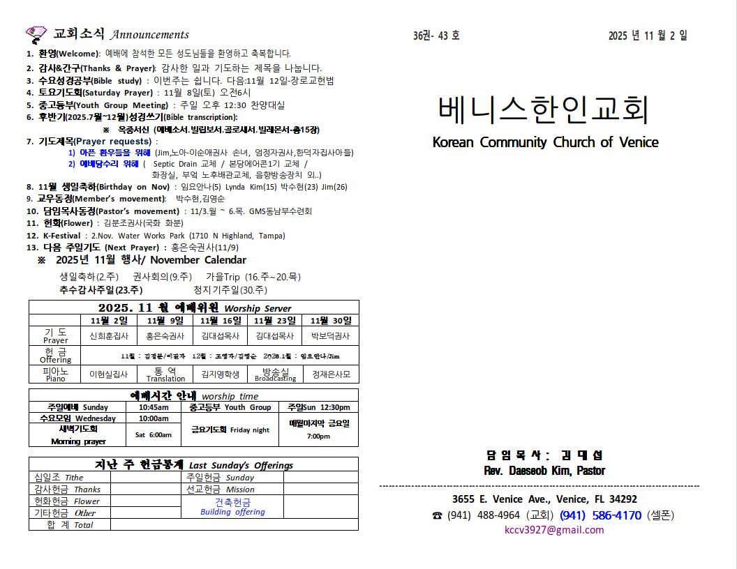 2025년 11월 2일 주일