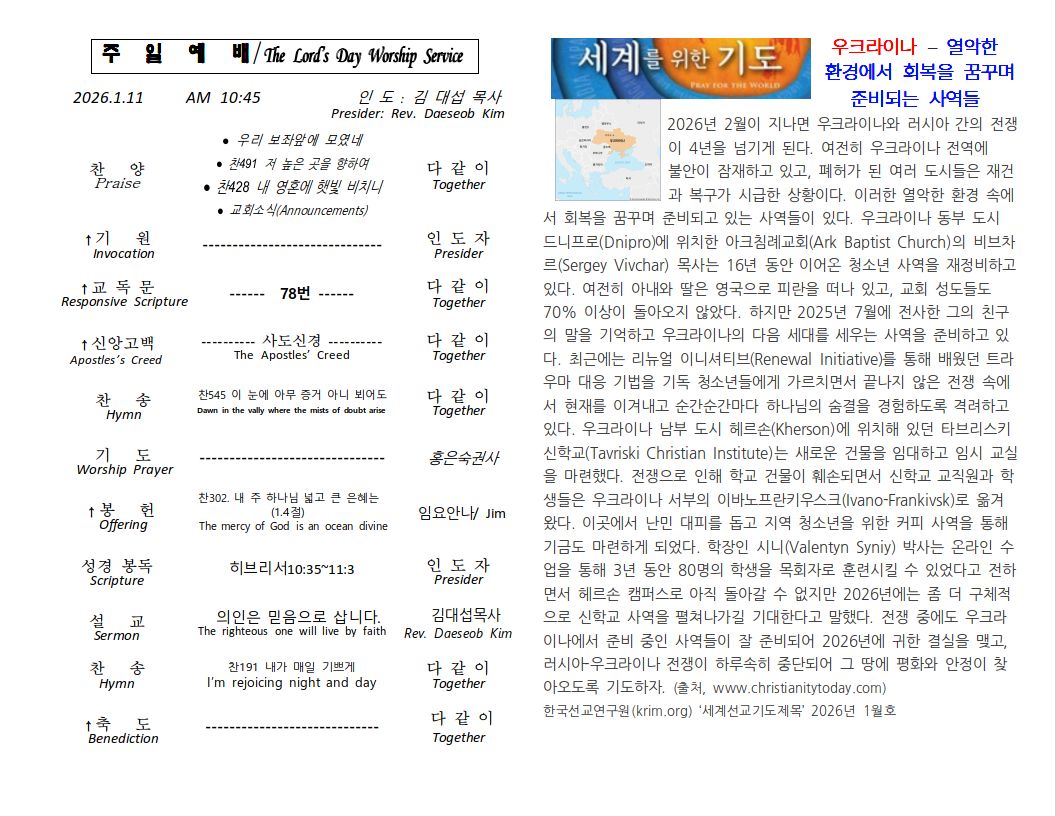 2026년 1월 11일 주보