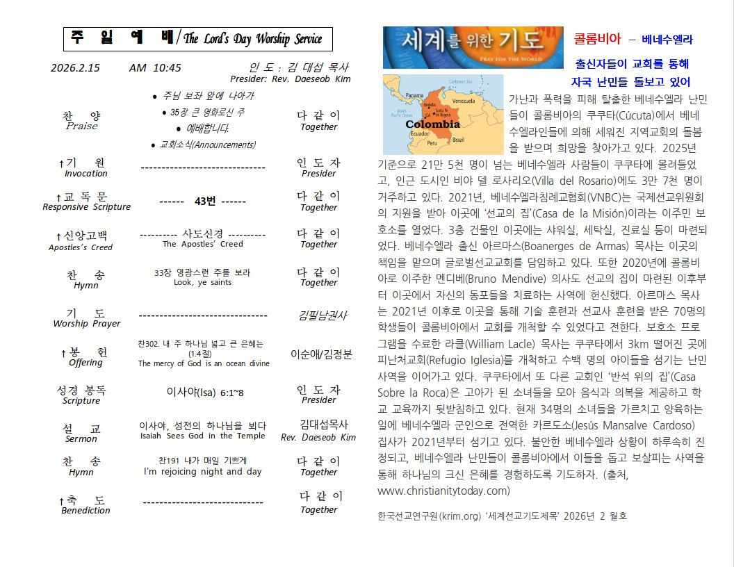 2026년 2월 15일 주일
