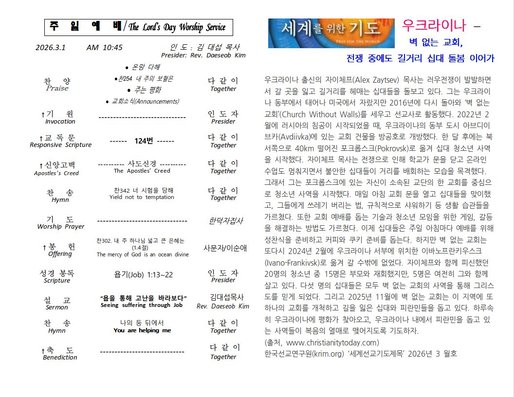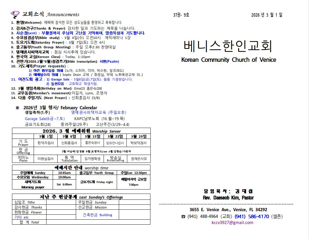 2026년 3월 8일 주일